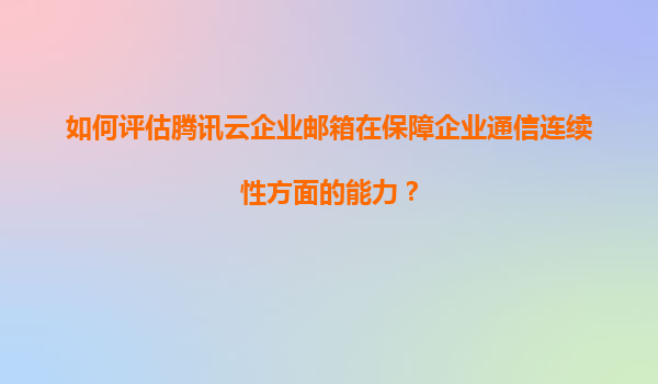 4008-020-360 如何評估騰訊云企業(yè)郵箱在保障企業(yè)通信連續(xù)性方面的能力? 一、企業(yè)通信連續(xù)性的關(guān)鍵要素 企業(yè)通信連續(xù)性是指企業(yè)在任何情況下(包括網(wǎng)絡(luò)中斷、硬件故障、自然災(zāi)害等)都能保持郵件系統(tǒng)的穩(wěn)定運(yùn)行...