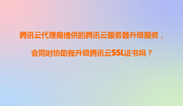 2025-11-19騰訊云代理商升級服務(wù)詳解:服務(wù)器與SSL證書的協(xié)同升級優(yōu)勢 一、騰訊云代理商升級服務(wù)的核心價(jià)值 當(dāng)您通過騰訊云代理商進(jìn)行云服務(wù)器升級時,代理商通常會提供一站式技術(shù)支持,其中包括但...