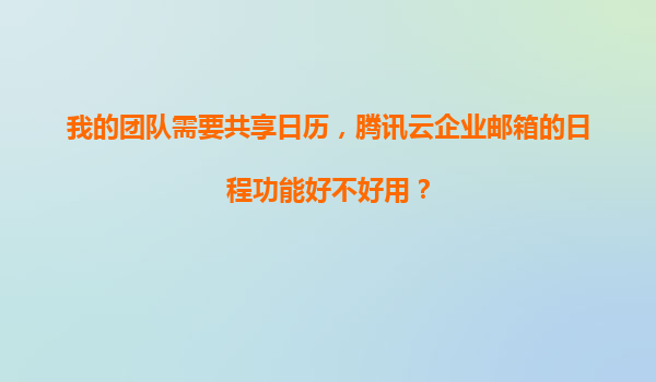 2025-11-17騰訊云企業(yè)郵箱日程功能評測:團隊共享日歷的理想之選 一、團隊共享日歷的核心需求分析 "我的團隊需要共享日歷"這一需求包含了三個關鍵點:協(xié)同性(多人實時編輯)、可視化(直觀展示時間安排)和穩(wěn)定性(...