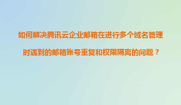 2025-11-13騰訊云企業(yè)郵箱多域名管理問(wèn)題的背景 在企業(yè)運(yùn)營(yíng)過(guò)程中,隨著業(yè)務(wù)規(guī)模的擴(kuò)大,往往需要使用多個(gè)域名來(lái)區(qū)分不同的業(yè)務(wù)線或子公司。騰訊云企業(yè)郵箱作為一款功能強(qiáng)大的企業(yè)郵箱服務(wù),支持多域名管理,但同時(shí)也可能遇到...