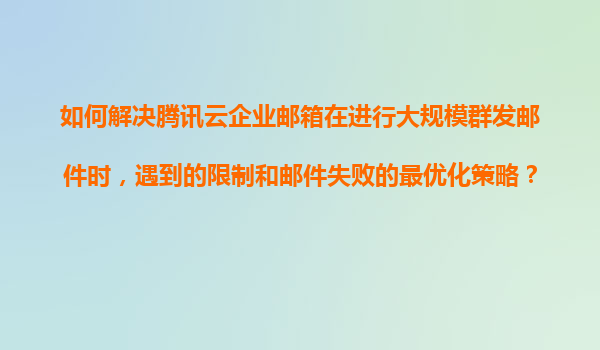 2025-11-13如何解決騰訊云企業(yè)郵箱大規(guī)模群發(fā)郵件的限制與優(yōu)化策略 問題背景 騰訊云企業(yè)郵箱作為國內(nèi)主流的企業(yè)級郵件服務(wù),在安全性和穩(wěn)定性上表現(xiàn)優(yōu)異,但面對大規(guī)模群...