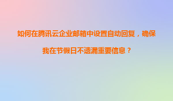 2025-11-23如何在騰訊云企業(yè)郵箱中設(shè)置自動(dòng)回復(fù),確保節(jié)假日不遺漏重要信息 一、騰訊云企業(yè)郵箱的自動(dòng)回復(fù)功能優(yōu)勢(shì) 騰訊云企業(yè)郵箱作為國(guó)內(nèi)領(lǐng)先的企業(yè)級(jí)郵件服務(wù),其自動(dòng)回復(fù)功能不僅操作簡(jiǎn)便,還具備以下核心優(yōu)勢(shì): ...