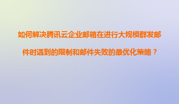 2025-11-11如何解決騰訊云企業(yè)郵箱在進行大規(guī)模群發(fā)郵件時遇到的限制和郵件失敗的最優(yōu)化策略 問題背景與挑戰(zhàn) 企業(yè)郵箱在日常業(yè)務(wù)運營中起到關(guān)鍵作用,尤其是大規(guī)模群發(fā)郵件(如營銷推廣、通知通告)的場景下。然而,由于...