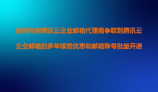 2025-11-10如何利用騰訊云企業(yè)郵箱代理商爭取多年續(xù)費優(yōu)惠與批量開通快速服務(wù) 一、騰訊云企業(yè)郵箱的核心優(yōu)勢 騰訊云企業(yè)郵箱基于微信同源技術(shù)架構(gòu),具有以下顯著優(yōu)勢: 高穩(wěn)定性:采用分布式集群架構(gòu),...