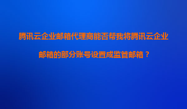 2025-11-06騰訊云企業(yè)郵箱代理商能否幫我將部分賬號(hào)設(shè)置為監(jiān)管郵箱? 一、騰訊云企業(yè)郵箱的監(jiān)管郵箱功能 騰訊云企業(yè)郵箱作為國(guó)內(nèi)領(lǐng)先的企業(yè)級(jí)郵件服務(wù),提供了完善的監(jiān)管郵箱(審計(jì)郵箱)功能。通...