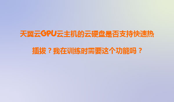 2025-11-08天翼云GPU云主機的云硬盤是否支持快速熱插拔?訓練時需要此功能嗎? 一、天翼云GPU云主機與云硬盤概述 天翼云作為中國電信旗下的云計算服務品牌,提供高性能的GPU云主機服務,適用于AI訓練、深度學習、科...