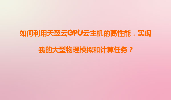 2025-11-08如何利用天翼云GPU云主機的高性能,實現(xiàn)大型物理模擬和計算任務? 一、天翼云GPU云主機的核心優(yōu)勢 天翼云GPU云主機基于國產(chǎn)化硬件架構,提供高性能計算能力,尤其適合以下場景: 異構計算加速:搭載NVIDIATesla...