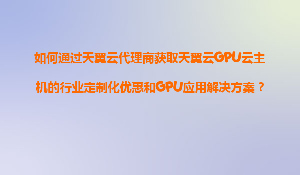 2025-11-08如何通過天翼云代理商獲取天翼云GPU云主機的行業(yè)定制化優(yōu)惠和GPU應用解決方案? 一、天翼云GPU云主機的核心優(yōu)勢 天翼云作為中國電信旗下云計算品牌,在GPU云主機領域具備三大核心優(yōu)勢: 高性能...