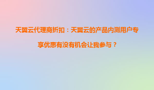 2025-10-20天翼云代理商折扣:解鎖內(nèi)測(cè)用戶專享優(yōu)惠的機(jī)遇與價(jià)值 一、天翼云的內(nèi)測(cè)用戶專享優(yōu)惠機(jī)制 天翼云作為中國(guó)電信旗下云計(jì)算服務(wù)品牌,長(zhǎng)期通過(guò)內(nèi)測(cè)用戶計(jì)劃優(yōu)化產(chǎn)品體驗(yàn)。內(nèi)測(cè)用戶不僅能提...