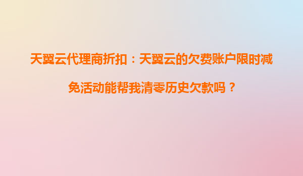 2025-10-20天翼云代理商折扣:天翼云的欠費賬戶限時減免活動能幫我清零歷史欠款嗎? 在使用天翼云服務(wù)的過程中,有些用戶可能會因為各種原因?qū)е沦~戶出現(xiàn)欠費情況。面對欠費問題,許多用戶都會感到困擾,尤其是歷史欠款積累...
