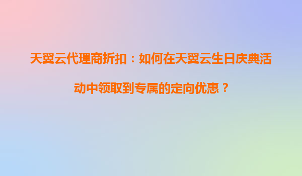 2025-10-20天翼云代理商折扣:如何在天翼云生日慶典活動中領(lǐng)取到專屬的定向優(yōu)惠? 一、天翼云的核心優(yōu)勢與代理商價值 天翼云作為中國電信旗下云計算品牌,憑借央企背景和強大的基礎(chǔ)設(shè)施布局,在穩(wěn)定性、安全性及本土...