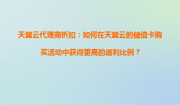2025-10-19天翼云代理商折扣:如何在天翼云的儲值卡購買活動中獲得更高的返利比例? 一、天翼云的優(yōu)勢分析 天翼云作為中國電信旗下的云計算品牌,憑借其強大的技術(shù)實力和豐富的資源積累,已成為國內(nèi)...