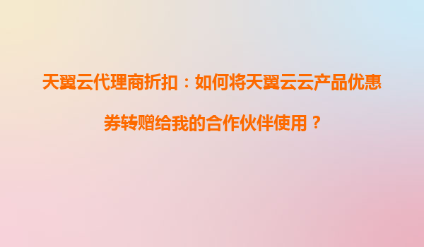 2025-10-19天翼云代理商折扣:如何將天翼云云產(chǎn)品優(yōu)惠券轉(zhuǎn)贈(zèng)給合作伙伴使用? 一、天翼云的核心優(yōu)勢(shì) 作為中國(guó)電信旗下的云計(jì)算服務(wù)品牌,天翼云憑借其強(qiáng)大的技術(shù)實(shí)力和資...