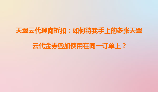 2025-10-19天翼云代理商折扣:如何將我手上的多張?zhí)煲碓拼鹑B加使用在同一訂單上? 1.天翼云及其代理商體系的優(yōu)勢(shì) 天翼云是中國(guó)電信旗下的云計(jì)算服務(wù)品牌,憑借其強(qiáng)大的基礎(chǔ)設(shè)施和穩(wěn)定的網(wǎng)...