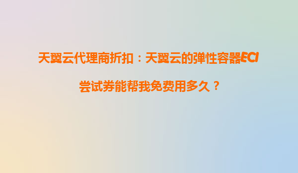 4008-020-360 天翼云彈性容器ECI試用券能免費(fèi)用多久?——詳解代理商折扣與產(chǎn)品優(yōu)勢(shì) 一、天翼云彈性容器ECI試用券的核心價(jià)值 作為中國(guó)電信旗下的云計(jì)算服務(wù)商,天翼云提供的彈性容器實(shí)例ECI(ElasticContainerInstance...