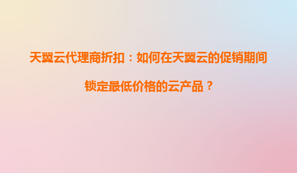 2025-10-18天翼云代理商折扣:促銷期間鎖定最低價(jià)格云產(chǎn)品的策略 天翼云作為中國電信旗下的云計(jì)算品牌,憑借其強(qiáng)大的基礎(chǔ)設(shè)施、穩(wěn)定的性能以及優(yōu)惠的價(jià)格政策,吸引了眾多企業(yè)和個(gè)人用戶。特別是在促銷期間,通過代理商渠道購...