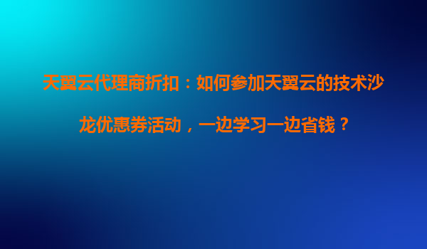 2025-10-18天翼云代理商折扣:如何參加天翼云的技術(shù)沙龍優(yōu)惠券活動,一邊學(xué)習(xí)一邊省錢? 在數(shù)字化經(jīng)濟(jì)的浪潮中,云計算已成為企業(yè)和個人提升效率、降低成本的重要工具。天翼云作為國內(nèi)領(lǐng)先的云服務(wù)商,不僅提供穩(wěn)定可靠的...