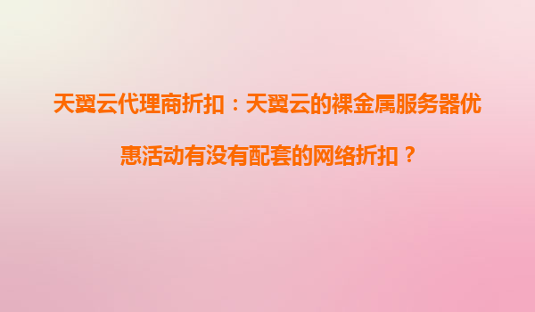 2025-10-18天翼云裸金屬服務(wù)器優(yōu)惠活動(dòng):配套網(wǎng)絡(luò)折扣解析 裸金屬服務(wù)器優(yōu)惠活動(dòng)概覽 天翼云作為中國(guó)電信旗下的云計(jì)算服務(wù)商,近期針對(duì)企業(yè)用戶推出了裸金屬服務(wù)器優(yōu)惠活動(dòng)。該活動(dòng)不僅提供高性能的裸金屬服務(wù)器折扣...