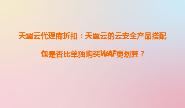 2025-10-17天翼云代理商折扣:云安全產(chǎn)品搭配包比單獨購買WAF更劃算? 一、天翼云安全產(chǎn)品概述 天翼云作為中國電信旗下的云計算品牌,提供全面的云安全解決方案,包括Web...
