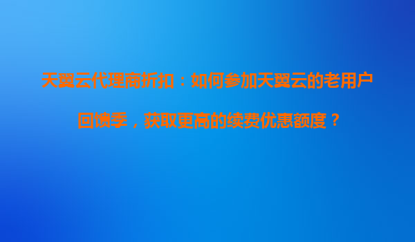 2025-10-17天翼云代理商折扣:如何參加天翼云老用戶回饋季,獲取更高的續(xù)費優(yōu)惠額度? 一、天翼云老用戶回饋季活動簡介 天翼云作為中國電信旗下的云計算服務(wù)品牌,長期致...