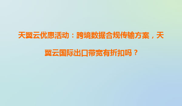 2025-04-04天翼云優(yōu)惠活動(dòng):跨境數(shù)據(jù)合規(guī)傳輸方案與國際出口帶寬折扣詳解 一、天翼云跨境數(shù)據(jù)合規(guī)傳輸方案背景 隨著全球數(shù)字化進(jìn)程加速,企業(yè)跨境數(shù)據(jù)傳輸需求激增,但數(shù)據(jù)安全與合規(guī)性成為核心挑戰(zhàn)。天翼云...