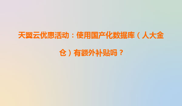 2025-04-04天翼云國(guó)產(chǎn)化數(shù)據(jù)庫(kù)優(yōu)惠活動(dòng):使用人大金倉(cāng),享多重補(bǔ)貼與云端優(yōu)勢(shì) 一、天翼云國(guó)產(chǎn)化戰(zhàn)略下的數(shù)據(jù)庫(kù)補(bǔ)貼政策 為響應(yīng)國(guó)家信息技術(shù)應(yīng)用創(chuàng)新(信創(chuàng))戰(zhàn)略,天翼云推出國(guó)產(chǎn)化數(shù)據(jù)庫(kù)專項(xiàng)扶持計(jì)劃。針對(duì)...