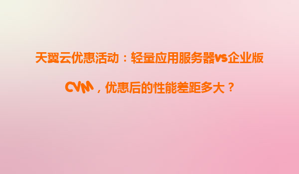 2025-04-04天翼云優(yōu)惠活動(dòng):輕量應(yīng)用服務(wù)器與企業(yè)版CVM性能對(duì)比解析 活動(dòng)背景與產(chǎn)品定位 天翼云近期推出的優(yōu)惠活動(dòng),重點(diǎn)聚焦于輕量應(yīng)用服務(wù)器和企業(yè)版云主機(jī)(CVM)兩大核心產(chǎn)品。輕量應(yīng)用服務(wù)器面向中小型項(xiàng)目及個(gè)...