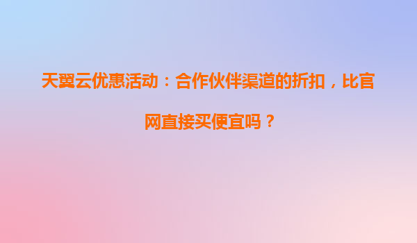 2025-04-04天翼云優(yōu)惠活動(dòng):合作伙伴渠道折扣是否比官網(wǎng)更劃算? 一、天翼云的核心優(yōu)勢(shì)解析 在探討合作伙伴渠道的優(yōu)惠力度之前,首先要理解天翼云作為國(guó)內(nèi)領(lǐng)先云服務(wù)商的...