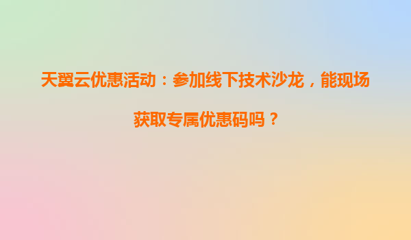 2025-04-04天翼云線下技術(shù)沙龍:技術(shù)賦能與專屬優(yōu)惠的雙重盛宴 一、線下技術(shù)沙龍:解鎖專屬優(yōu)惠碼的黃金機(jī)會(huì) 天翼云線下技術(shù)沙龍不僅是技術(shù)交流的平臺(tái),更是用戶獲取專屬福利的窗口。參與者可在活動(dòng)現(xiàn)場(chǎng)通過(guò)...