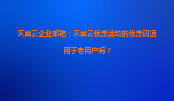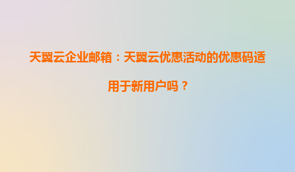 2025-04-01天翼云企業(yè)郵箱優(yōu)惠活動:優(yōu)惠碼是否適用于新用戶? 一、優(yōu)惠碼適用范圍解析 天翼云企業(yè)郵箱近期推出的優(yōu)惠活動備受關(guān)注,其中最核心的問題是:優(yōu)惠碼是否適用于新用戶?根據(jù)官方政策,此次優(yōu)惠活動主...