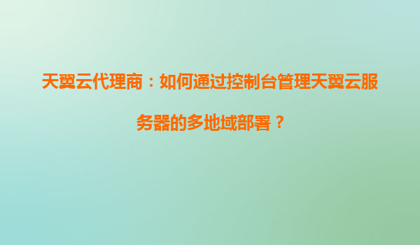 2025-03-31天翼云代理商:如何通過控制臺管理天翼云服務(wù)器的多地域部署? 一、天翼云多地域部署的核心優(yōu)勢 作為國內(nèi)領(lǐng)先的云服務(wù)提供商,天翼云憑借其獨(dú)特的資源布局和技術(shù)能力,為代理商及企業(yè)用戶提供了高...