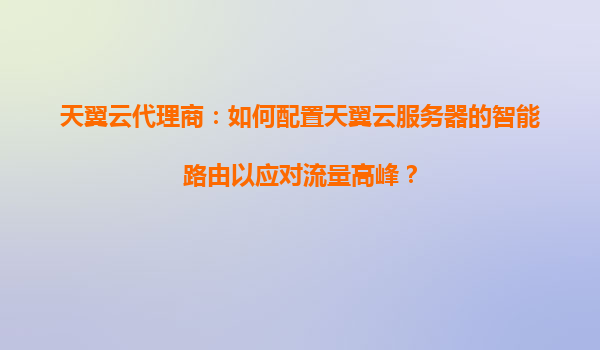 4008-020-360 天翼云代理商:如何配置天翼云服務(wù)器的智能路由以應(yīng)對流量高峰? 一、智能路由配置的重要性與流量高峰挑戰(zhàn) 隨著企業(yè)數(shù)字化轉(zhuǎn)型加速,業(yè)務(wù)流量呈現(xiàn)爆發(fā)式增長。尤其在電商大促、在...