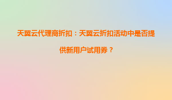 2025-10-15天翼云代理商折扣:新用戶試用券政策與平臺(tái)優(yōu)勢(shì)解析 一、天翼云新用戶試用券活動(dòng)介紹 在天翼云的代理商折扣活動(dòng)中,新用戶試用券是常見(jiàn)的推廣方式之一。天翼云...