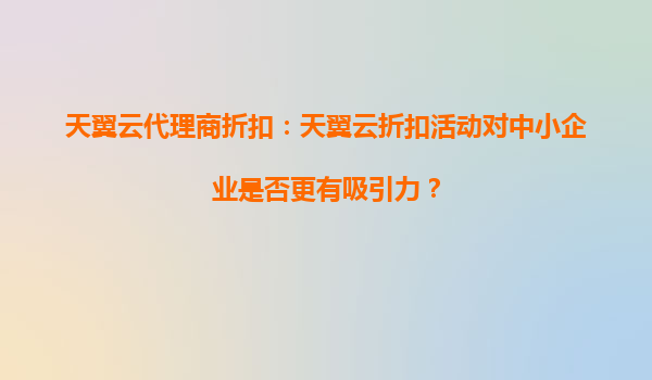 2025-10-14天翼云代理商折扣:天翼云折扣活動(dòng)對(duì)中小企業(yè)是否更有吸引力? 一、天翼云的核心優(yōu)勢分析 天翼云作為中國電信旗下云計(jì)算品牌,憑借央企背景和遍布全國的IDC資源優(yōu)勢,在穩(wěn)定性、安全性及本地化服務(wù)方...