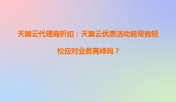 4008-020-360 天翼云代理商折扣:天翼云優(yōu)惠活動(dòng)能幫我輕松應(yīng)對(duì)業(yè)務(wù)高峰嗎? 在當(dāng)今數(shù)字化時(shí)代,企業(yè)業(yè)務(wù)的快速發(fā)展離不開穩(wěn)定、高效、安全的云服務(wù)支持。尤其是面對(duì)業(yè)務(wù)高峰,如何確保系統(tǒng)的穩(wěn)定性和性能,成為每個(gè)企業(yè)關(guān)注...