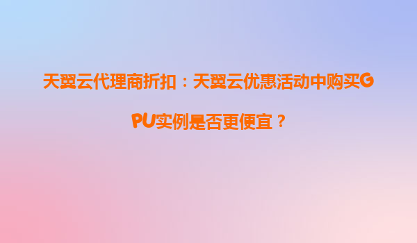 2025-10-14天翼云代理商折扣:天翼云優(yōu)惠活動(dòng)中購(gòu)買(mǎi)GPU實(shí)例是否更便宜? 引言 隨著云計(jì)算技術(shù)的快速發(fā)展,越來(lái)越多的企業(yè)和個(gè)人開(kāi)始依賴云服務(wù)來(lái)滿足計(jì)算需求。GPU實(shí)例因...