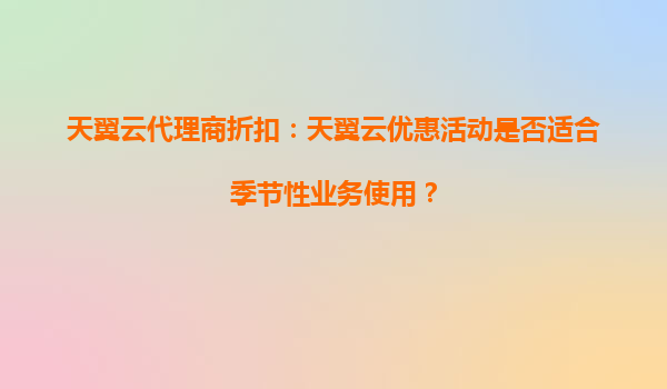 2025-10-13天翼云代理商折扣優(yōu)惠活動解析 天翼云作為中國電信旗下的云計(jì)算服務(wù)品牌,憑借其強(qiáng)大的基礎(chǔ)設(shè)施和豐富的產(chǎn)品線,為企業(yè)用戶提供了穩(wěn)定、安全的云服務(wù)解決方案。近期推出的代理商折扣優(yōu)惠活動,尤其適合季節(jié)性業(yè)...