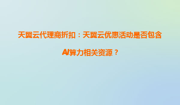 2025-10-11天翼云代理商折扣:天翼云優(yōu)惠活動(dòng)是否包含AI算力相關(guān)資源? 一、天翼云代理商折扣概述 天翼云作為中國電信旗下的云計(jì)算服務(wù)品牌,近年來在云計(jì)算領(lǐng)域發(fā)展迅速,憑借其強(qiáng)大的基礎(chǔ)設(shè)施和豐富的資源...