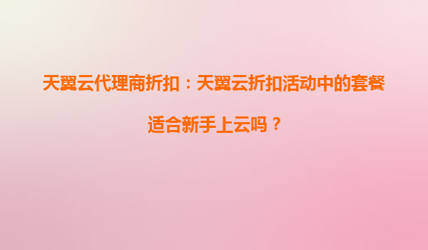 4008-020-360 天翼云代理商折扣:天翼云折扣活動(dòng)中的套餐適合新手上云嗎? 一、天翼云的優(yōu)勢(shì)解析 隨著云計(jì)算技術(shù)的普及,越來(lái)越多的企業(yè)和個(gè)人開(kāi)始選擇云服務(wù)來(lái)滿足業(yè)務(wù)需求。天翼云作為中國(guó)電信旗下...