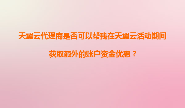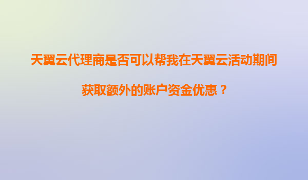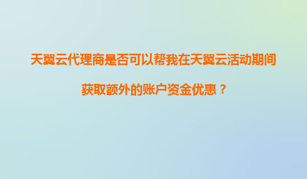 天翼云代理商是否可以幫我在天翼云活動期間獲取額外的賬戶資金優(yōu)惠? 一、天翼云代理商在活動中的角色與價值 天翼云作為中國電信旗下的云計算品牌,憑借其強大的基礎設施、穩(wěn)定的網絡服務和靈活的解決方案...