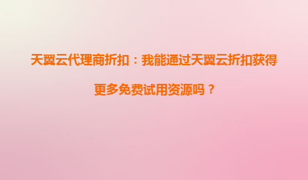2025-10-06天翼云代理商折扣:我能通過天翼云折扣獲得更多免費試用資源嗎? 一、天翼云免費試用資源概述 天翼云作為中國電信旗下的云計算服務(wù)品牌,為個人用戶和企業(yè)客戶提供了豐富的免費試用資源...