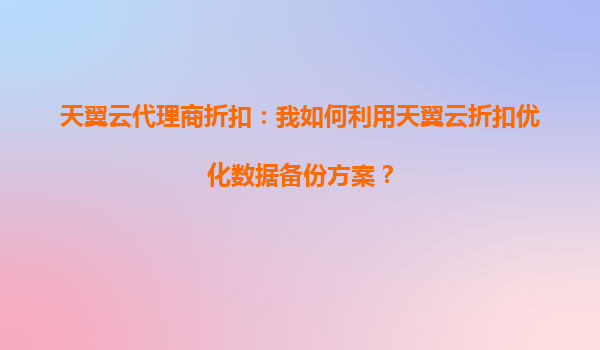 2025-10-06如何利用天翼云代理商折扣優(yōu)化數(shù)據(jù)備份方案? 一、天翼云的核心優(yōu)勢 天翼云作為中國電信旗下的云計算品牌,憑借央企背景和技術(shù)積累,在數(shù)據(jù)備份領(lǐng)域具備顯著優(yōu)勢: 高可靠性架構(gòu):采用3副本存...