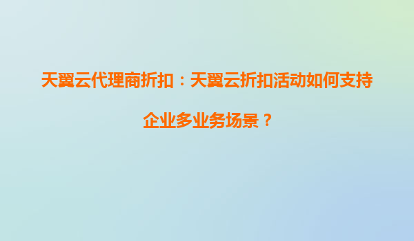 2025-10-05天翼云代理商折扣:天翼云折扣活動如何支持企業(yè)多業(yè)務(wù)場景? 引言 隨著數(shù)字化轉(zhuǎn)型的加速,云計算已成為企業(yè)提升效率、降低成本的關(guān)鍵工具。天翼云作為中國電信旗下的云計算服務(wù)品牌,憑借其強(qiáng)大的基礎(chǔ)設(shè)施...