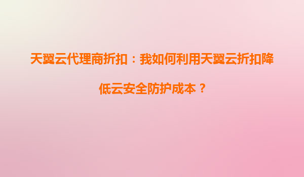 2025-10-05天翼云代理商折扣:如何利用天翼云折扣降低云安全防護成本? 引言 隨著企業(yè)數(shù)字化轉型的加速,云安全防護已成為企業(yè)IT架構中不可或缺的一部分。然而,高昂的云安全成本往往讓企業(yè)望而卻步。天翼云作為國內...