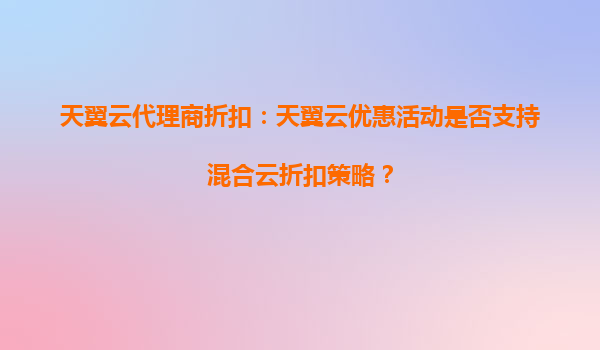 2025-10-05天翼云代理商折扣政策解析:混合云優(yōu)惠策略全面解讀 隨著企業(yè)數(shù)字化轉(zhuǎn)型加速,混合云因其靈活性和成本優(yōu)勢成為市場主流選擇。作為中國電信旗下云計算服務(wù)品牌,天翼云憑借強大的資源整合能力和安全合規(guī)優(yōu)勢,為...