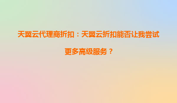 2025-10-05天翼云代理商折扣:天翼云折扣能否讓我嘗試更多高級服務(wù)? 引言 在數(shù)字化轉(zhuǎn)型的浪潮中,云計算已成為企業(yè)提升效率、降低成本的核心工具。天翼云作為中國電信旗...