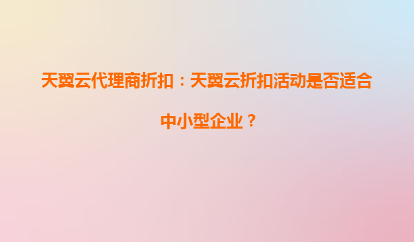 2025-10-04天翼云代理商折扣:天翼云折扣活動是否適合中小型企業(yè)? 引言 隨著數(shù)字化轉(zhuǎn)型的加速,云計算已成為企業(yè)提升運營效率、降低成本的重要工具。對于中小型企業(yè)而言,選擇合適的云服務提供商尤為關(guān)鍵。天翼云作...