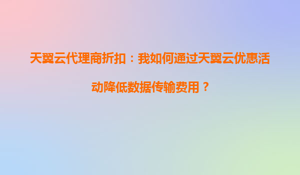 2025-10-04天翼云代理商折扣:如何通過天翼云優(yōu)惠活動降低數(shù)據(jù)傳輸費用? 一、天翼云的核心優(yōu)勢 天翼云作為中國電信旗下的云計算服務品牌,憑借其強大的基礎設施和資源優(yōu)勢,為企業(yè)用戶提供了高性能、高可靠的云服務...