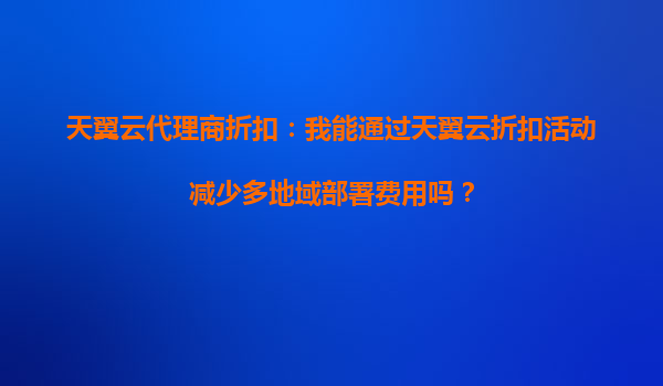 2025-10-03天翼云代理商折扣:如何通過(guò)折扣活動(dòng)優(yōu)化多地域部署成本? 一、天翼云的核心優(yōu)勢(shì) 天翼云作為中國(guó)電信旗下的云計(jì)算服務(wù)品牌,憑借其央企背景和技術(shù)實(shí)力,在云計(jì)算領(lǐng)域形成了獨(dú)特的競(jìng)爭(zhēng)優(yōu)...