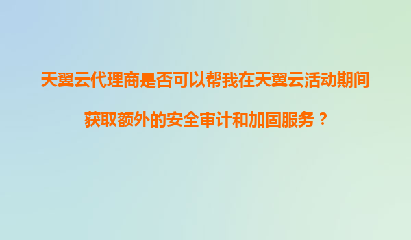 2025-11-06天翼云代理商能否幫助用戶獲取活動(dòng)期間額外安全審計(jì)與加固服務(wù)? 一、天翼云代理商的增值服務(wù)能力 在天翼云官方活動(dòng)期間,認(rèn)證代理商通常具備以下服務(wù)優(yōu)勢(shì): 專屬活動(dòng)通...